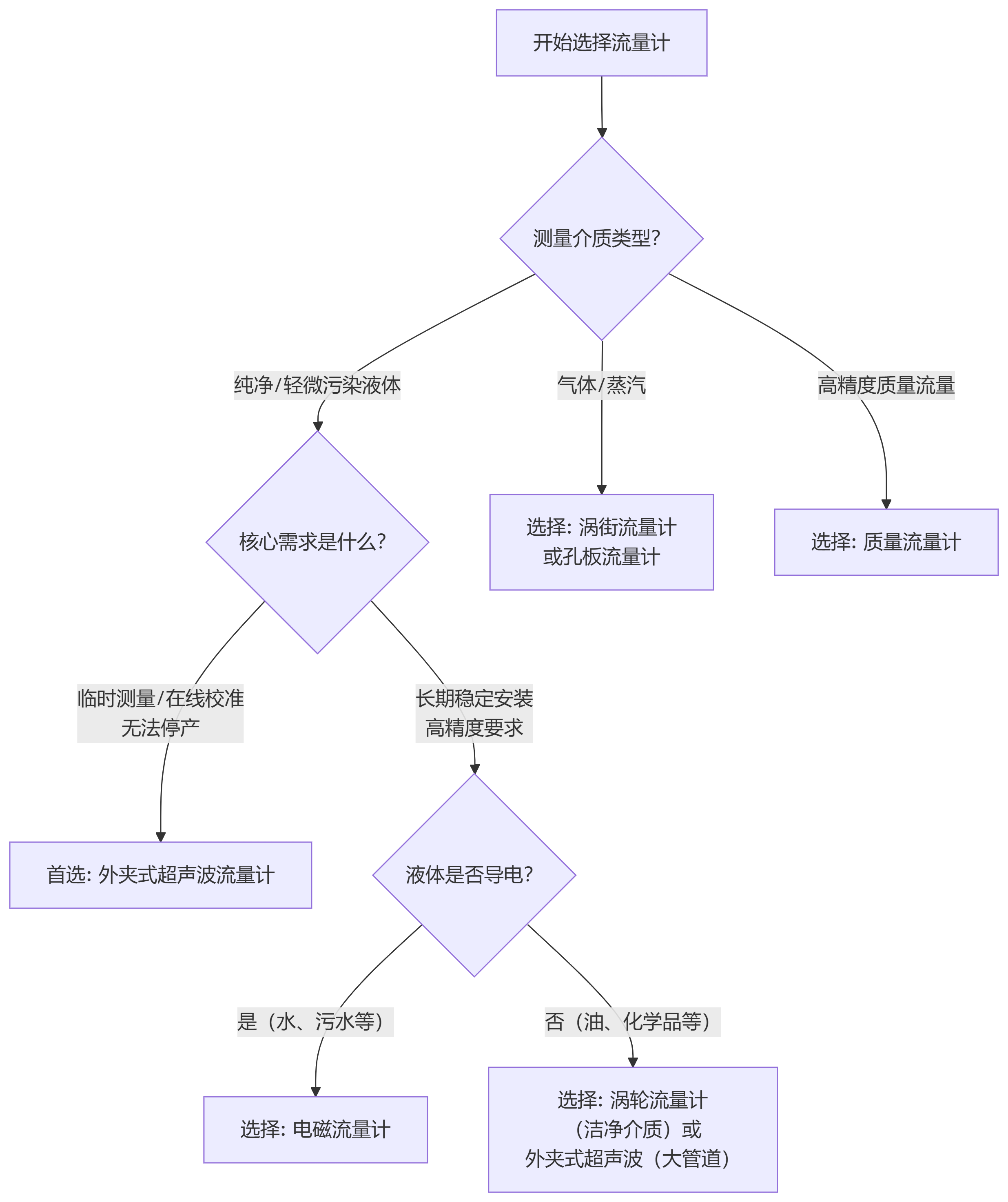测量的是气体、高温蒸汽或超纯净液体? → 其他专用流量计 有不可替代的优势。